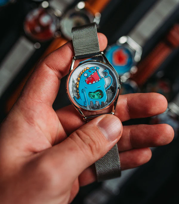 So not a single watch, and the designs may not all be from British designers, but the brand is British and Crispin Jones’ collaborative vision has a truly British eccentric feel. Since 2007, Mr Jones has collaborated with scores of artists to bring incredible, unique designs and realise them in watch form.